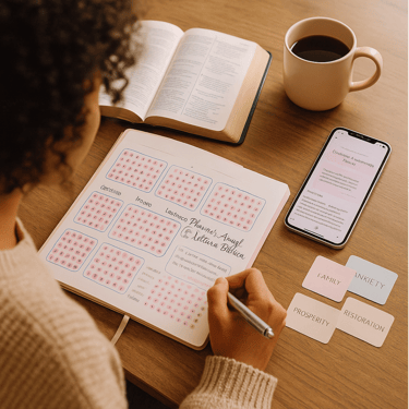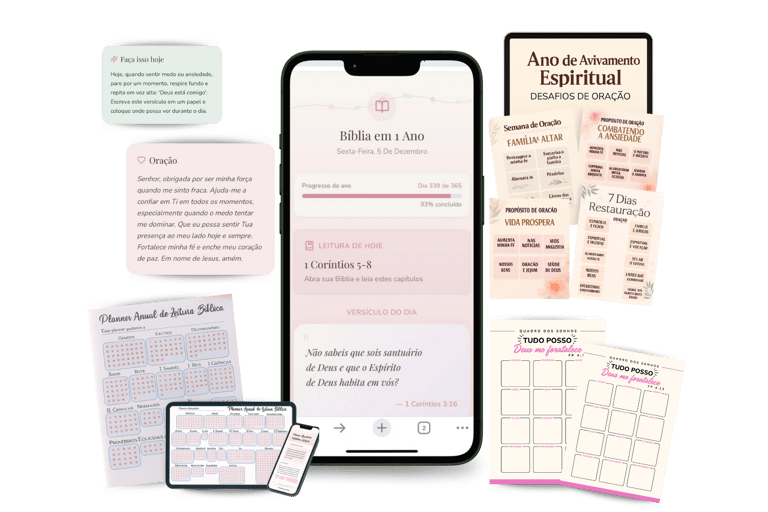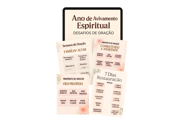 4 desafios de oração com guias diários para ajudar você a orar por sua família, emoções, finanças e restauração de forma simples e guiada.