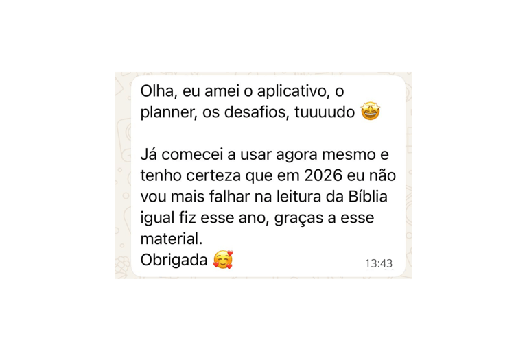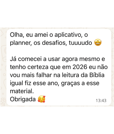 Acesse pelo celular com 1 clique e receba todos os dias exatamente o que você precisa para ler a Bíblia inteira em 2026.